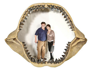 Dente de megalodonte comparado ao de um tubarão-branco (Carcharodon carcharias), o maior peixe predador existente. Crédito: Rex Features |